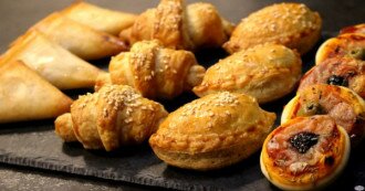 4 recettes d’apéritifs pour les fêtes : des mini-pizzas, des samoussas chèvre miel, des mini-croissants saumon ricotta et des mini-chaussons tapenade mozzarella !